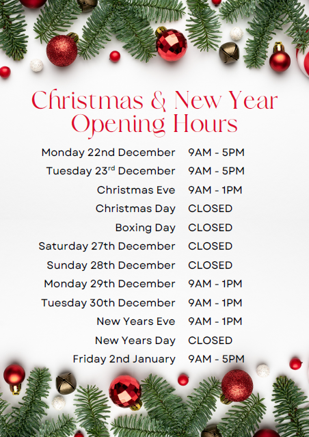 Our normal office opening hours will remain in place until the 23rd December 2025 and will again apply from the 2nd January 2026.